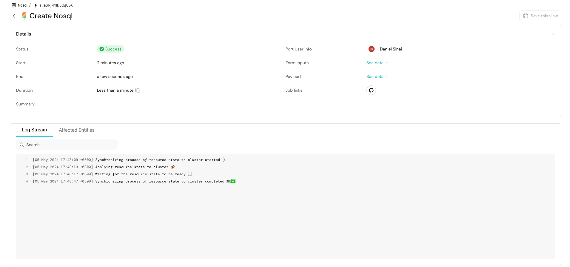 • Port allows multiple ways to enhance the experience of executing Actions, feel free to alter the Action in Port to your needs by visiting Action Documentation.